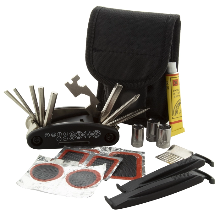 Ne glede na to ali kolesarite na mestnem, gorskem kolesu ali na "specialki" - set orodja, ki ga je mogoče hitro pospraviti v nahrbtnik ali torbico vedno pride prav. Različni kompleti, kjer najdete vse od osnovnega orodja do pripomočkov, s katerimi rešite težave s počeno zračnico. Poskrbimo za tisk vašega logotipa ali promocijskega sporočila.