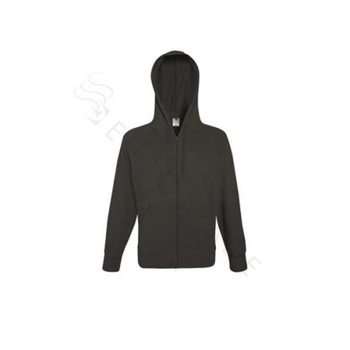 80% bombaž/ 20% poliester; 240g/m2; v kapuci je trak za zavezovanje v isti barvi, spredaj dva velika žepa, nima ramenskih šivov, zapiranje na zadrgo; velikosti od S do XXL