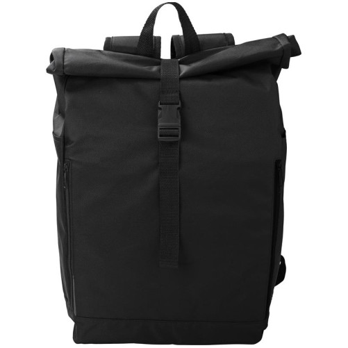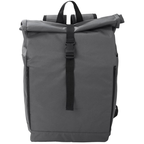 Nahrbtnik iz RPET poliestra(600D). Dva predala na zadrgo ob strani in en velik, ki se zapre z ježkom, zavije in zapne s sponko.