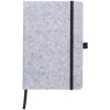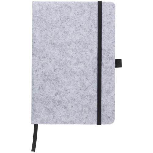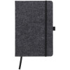 RPET notesnik (A5) iz filca, s 160 črtnimi stranmi, zanko za pisala, trakom za označevanje in elastiko.