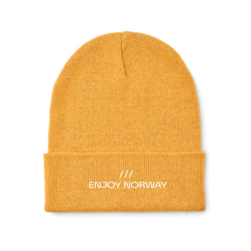Unisex knitted beanie hat in soft stretchable polyester (64%) and acrylic (36%) with rolled up cuff. A stretchy one-size-fits-all design.