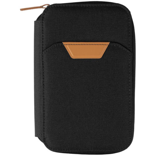 rPET potovalna denarnica na zadrgo. RFID zaščita, držalo za telefon, več žepov. Posamezno pakirano v rjavo kartonasto škatlo.