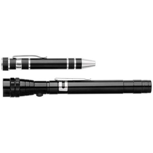 Set izvijača z osmimi nastavki in teleskopske svetilke.