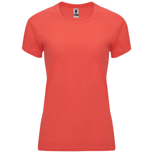 Ženska športna majica s kratkimi rokavi in okroglim ovratnikom z ujemajočimi se pokritimi šivi. Blago, ki diha, je enostavno za pranje in sušenje. 100% poliester, 135 g/m2
