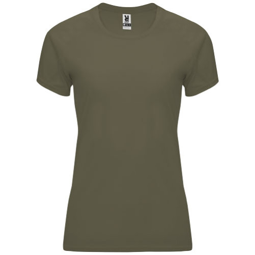 Ženska športna majica s kratkimi rokavi in okroglim ovratnikom z ujemajočimi se pokritimi šivi. Blago, ki diha, je enostavno za pranje in sušenje. 100% poliester, 135 g/m2